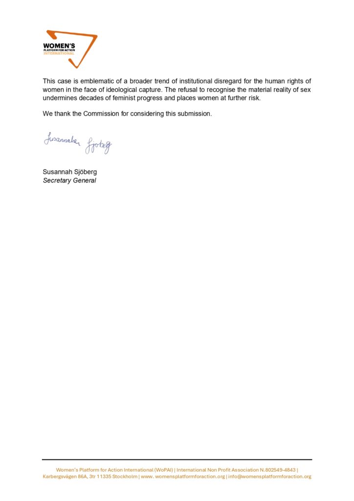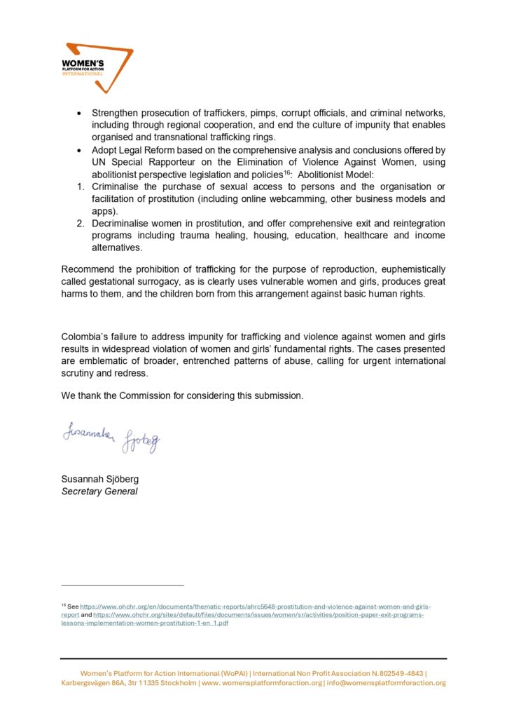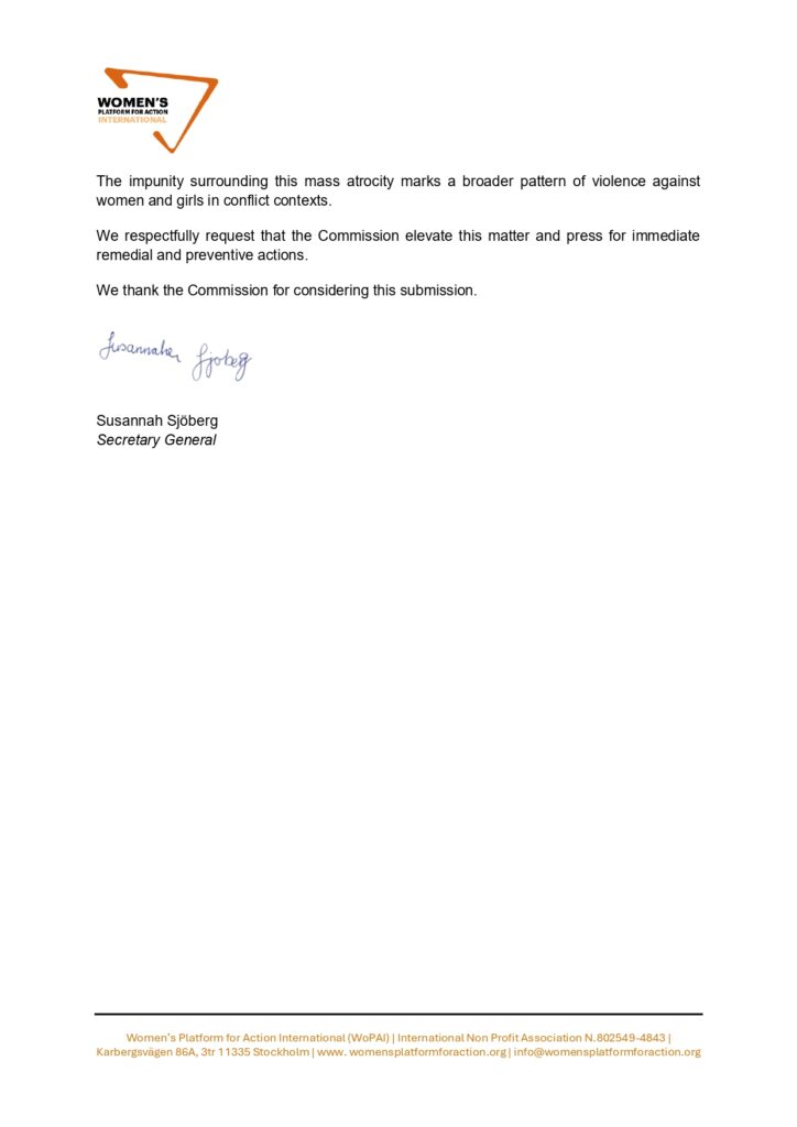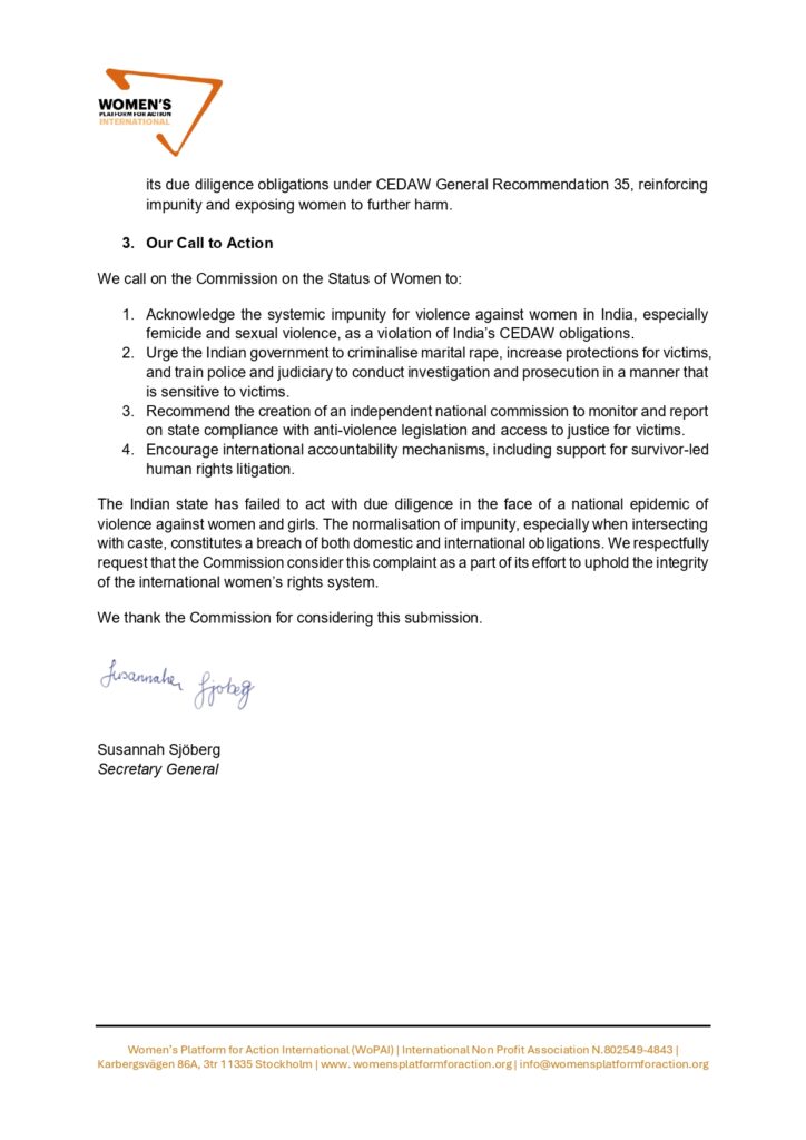 We expect the Commission on the Status of Women (CSW) communication procedures to review our complaints and communicate them to the states concerned.